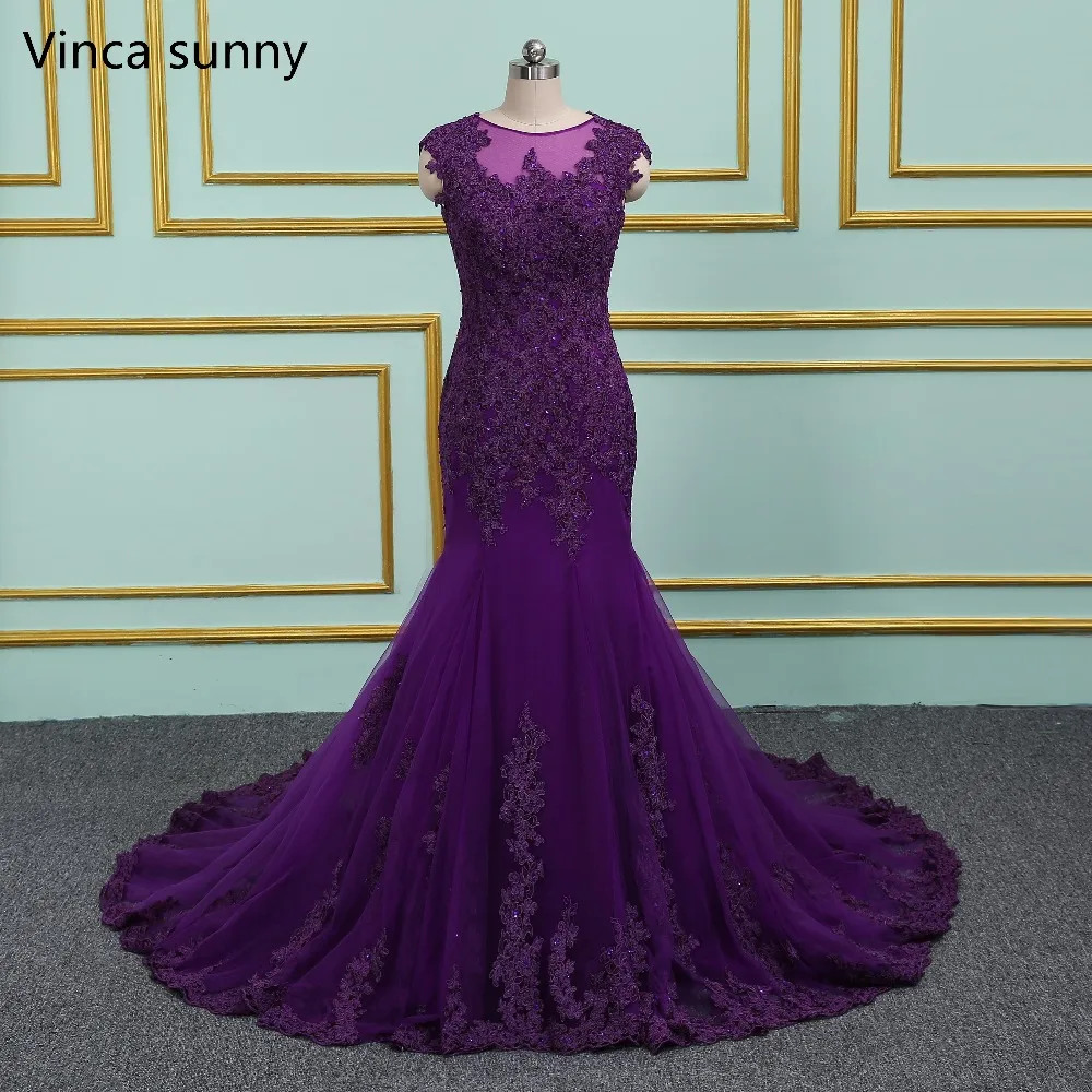 Purple Evening Dresses Long Mermaid 2020 Elegant Sheer Scoop Formal Gown vestido de noiva Long Prom dress Plus Size