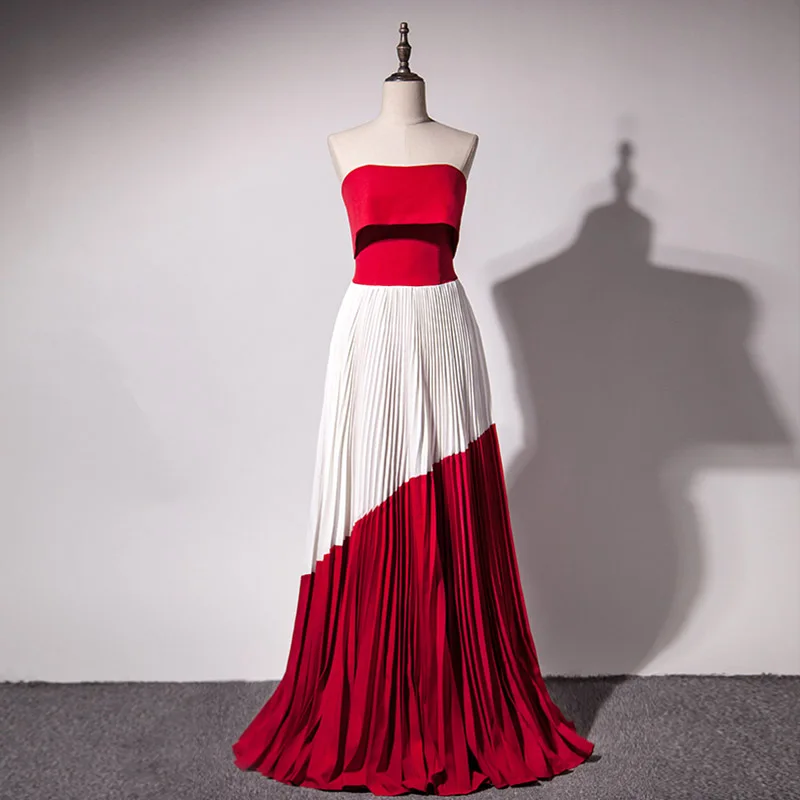 Get New Fashion Long Prom Dresses 2020 Strapless Knitting Red and White Formal Evening Gowns only undefined just for today